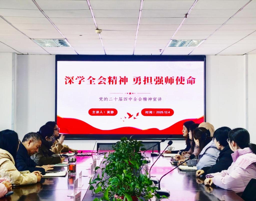 12月4日,bbin连环夺宝官网党总支书记黄静以“深学全会精神,勇担强师使命”为主题,面向学院师生开展党的二十届四中全会精神专题宣讲活动。此次宣讲活动紧密贴合外语学科特色与育人实践,将全会精神有效融入教育教学各环节。