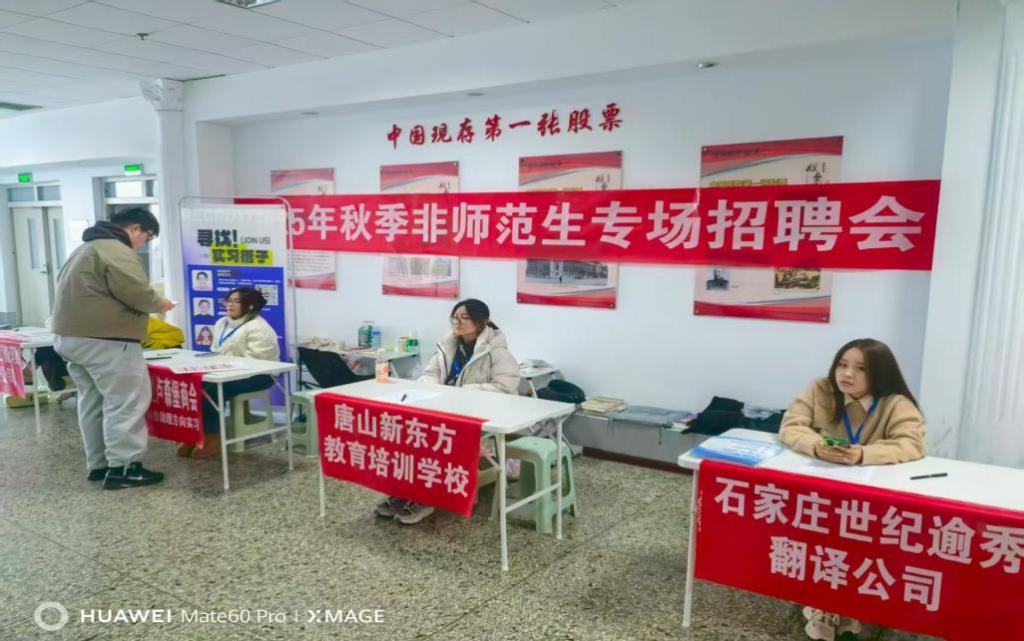招聘会现场按“企业宣讲—简历投递—单独面试”流程有序推进,参会企业涵盖教育机构、翻译企业、企业管理服务等多个领域。