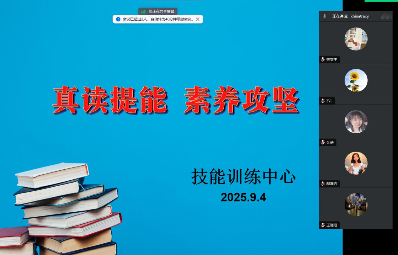 2025年9月4日,bbin连环夺宝官网本学期技能训练专项研讨会在线上顺利举行。27位教师围绕外研阅读平台的应用以及技能训练实效的提升,展开了深入且富有成效的交流。会议着重聚焦于三大核心议题:训练平台的有效落地执行方案、学生真实阅读策略的设计,以及听说读写综合能力的培养路径。